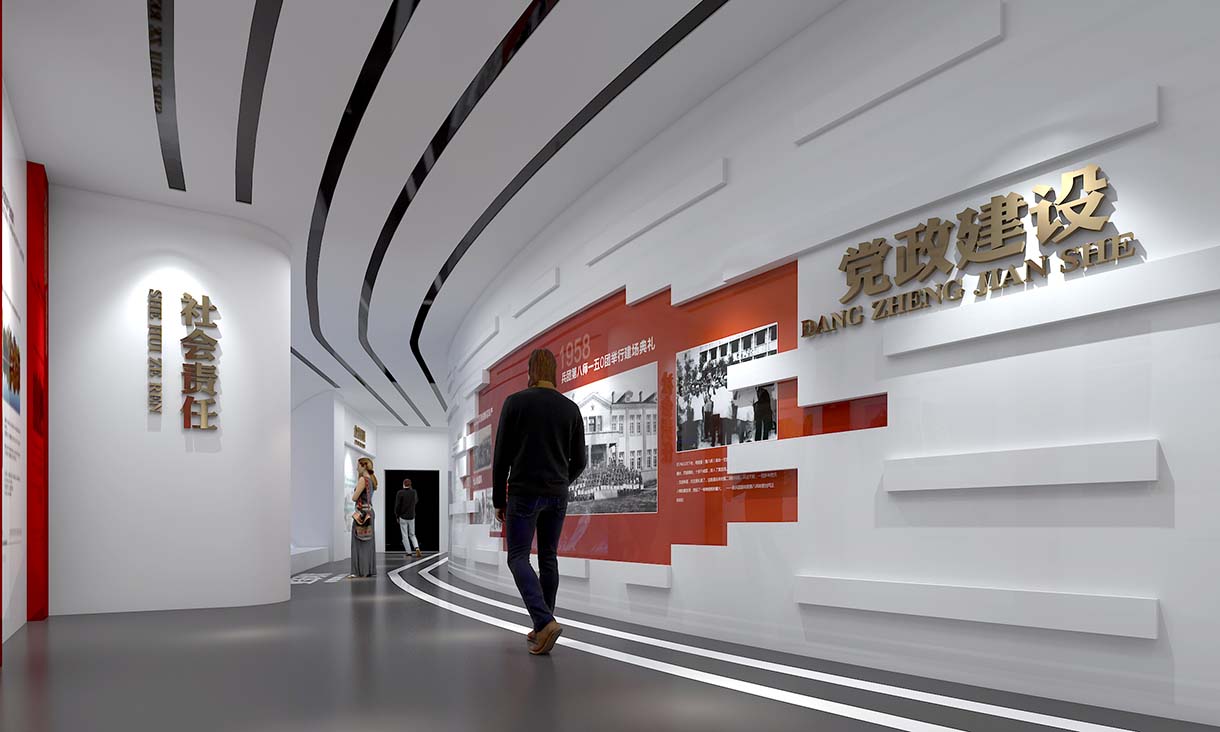 采用先進(jìn)的數(shù)字展示形式,企業(yè)展廳設(shè)計(jì)中產(chǎn)品的宣傳推廣方式上可采用先進(jìn)的數(shù)字化展示方法進(jìn)行展示,如:在展現(xiàn)先進(jìn)制造設(shè)備與前沿制造技術(shù)上。弧幕影院能更好的吸引參觀者的目光,尤其是當(dāng)它進(jìn)行場(chǎng)景重現(xiàn)時(shí),觀眾仿佛自己置身于現(xiàn)實(shí)的工廠中。這樣的呈現(xiàn)方式更深得人心,同時(shí)從側(cè)面也能展示出中紡集團(tuán)的企業(yè)實(shí)力。