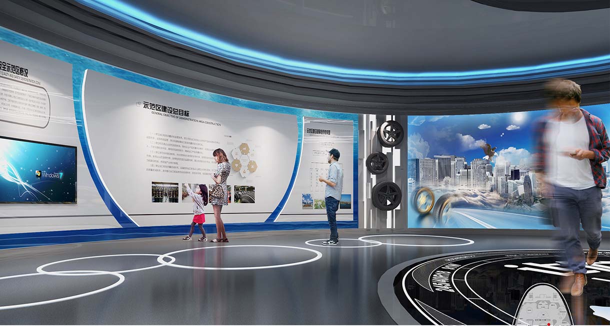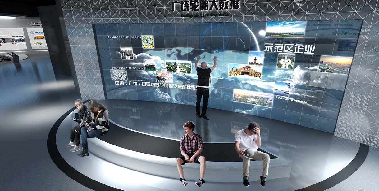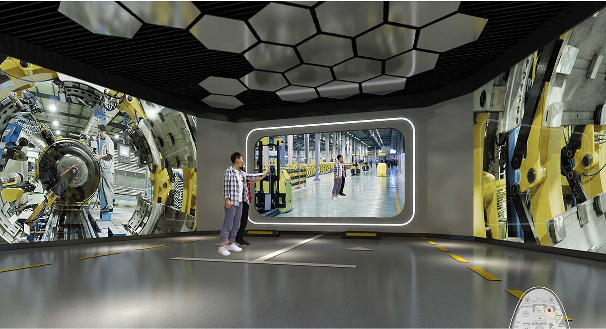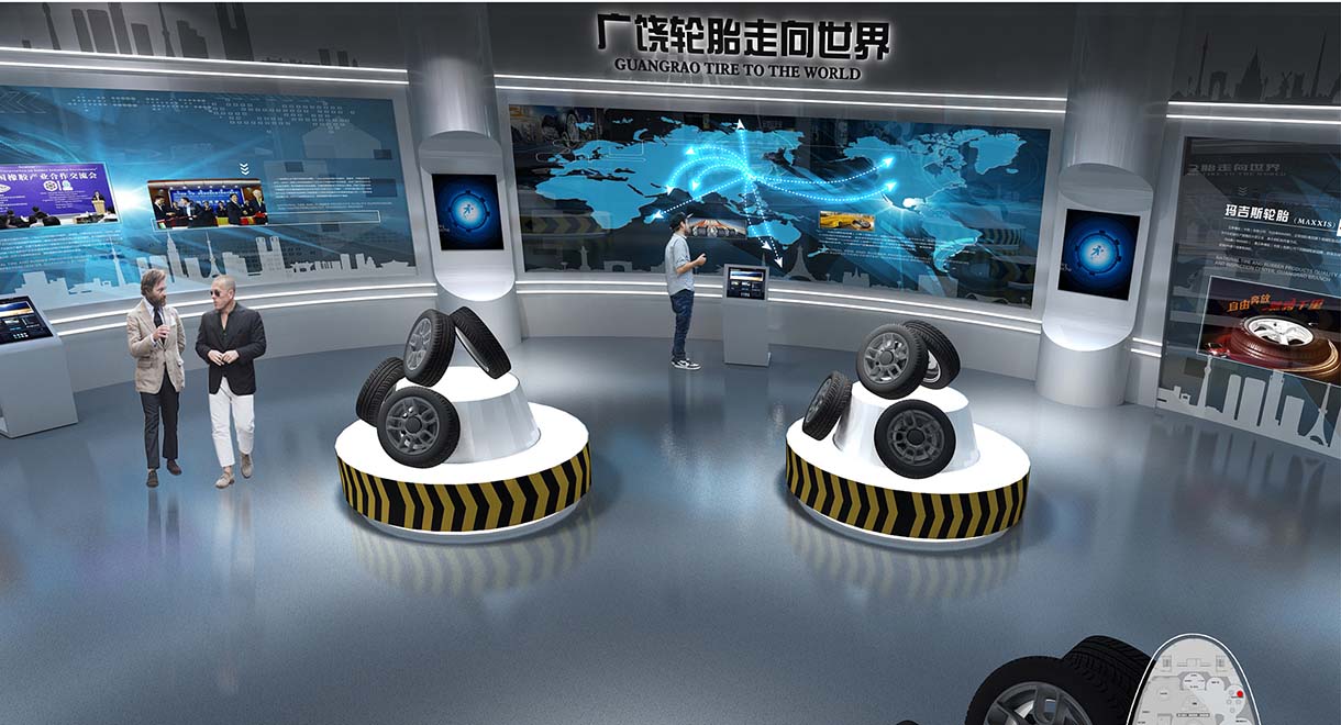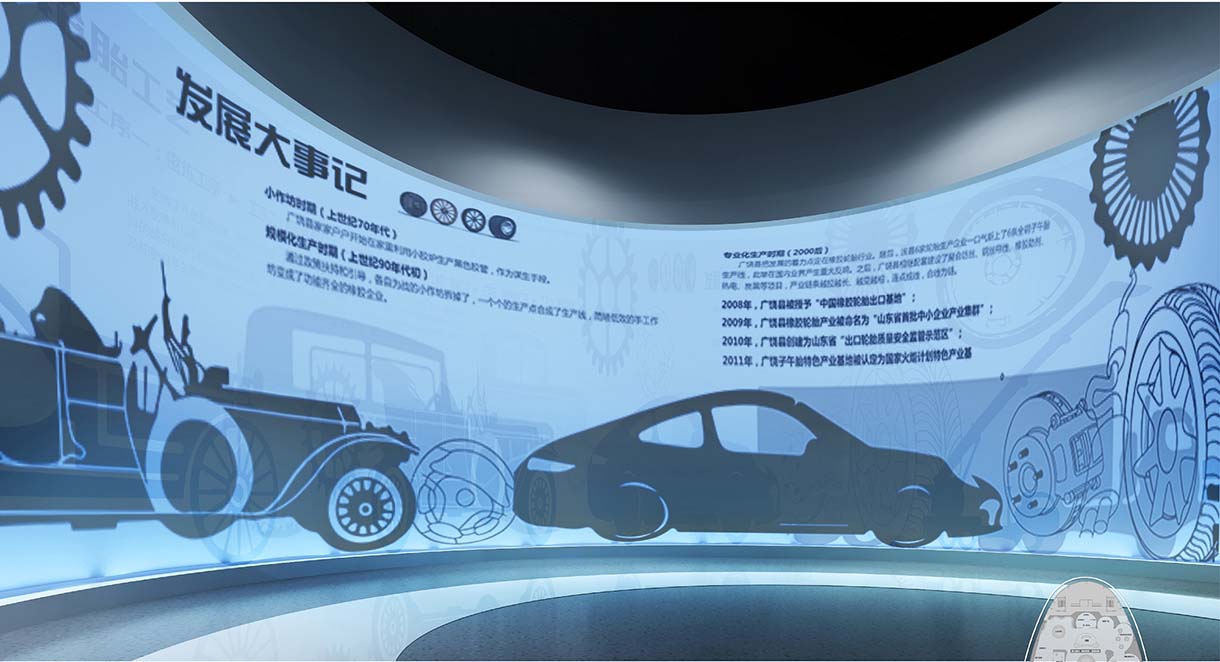通過影像播放裝置可以展現(xiàn)廣饒輪胎生產(chǎn)全過程、廣饒輪胎所獲榮譽(yù),充分展現(xiàn)廣饒輝煌成就,配合AR體驗(yàn)空間,使觀眾置身其中,親臨生產(chǎn)現(xiàn)成,了解廣饒輪胎生產(chǎn)流程,感受廣饒輪胎的生產(chǎn)精度。