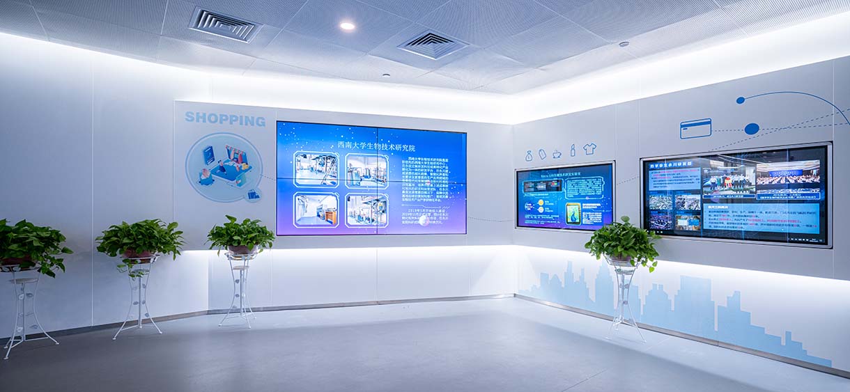 重慶永川大數據展廳項目目標:本次展廳的建設目標是針對永川大數據產業園內現有企業進行業態分類展示,并通過多種多媒體及互動形式,將各個企業的企業介紹,企業產品,公司發展情況進行相關解說與介紹。