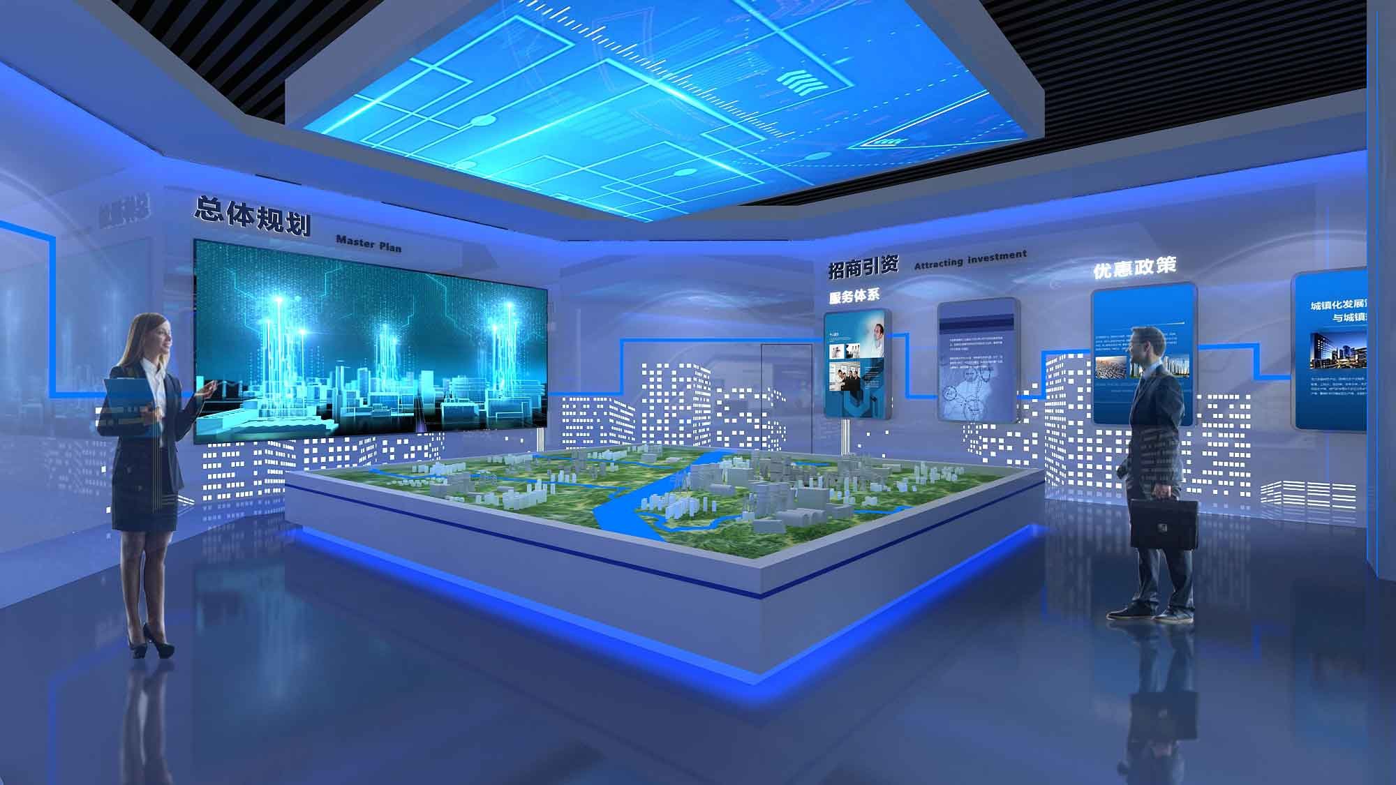 項目介紹:津和數字電子產業園展示中心把空間展示和數字內容展示功能相結合。 打破規劃展示的套路,以創新思維,利用高科技手段,打造震撼的互動參觀體驗,把展示中心建設成為承載園區形象、規劃建設及入駐企業產品的重要展示窗口。