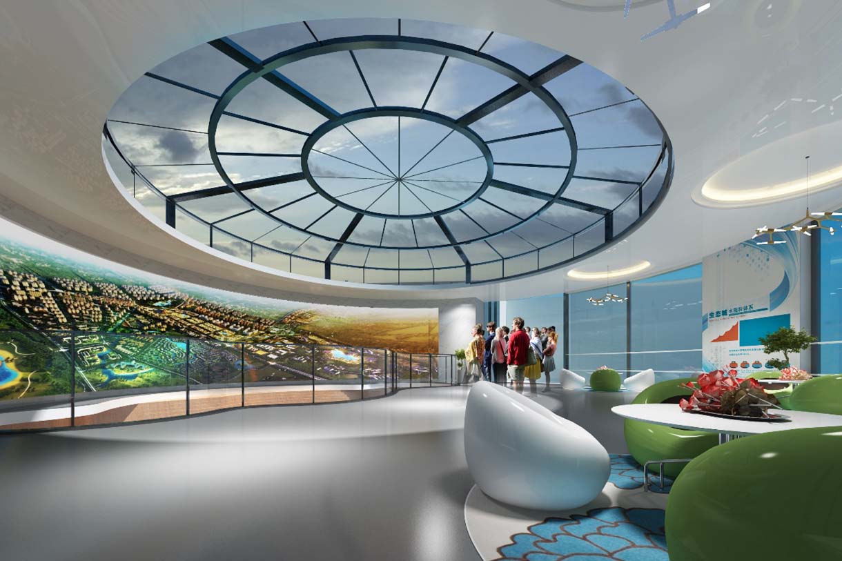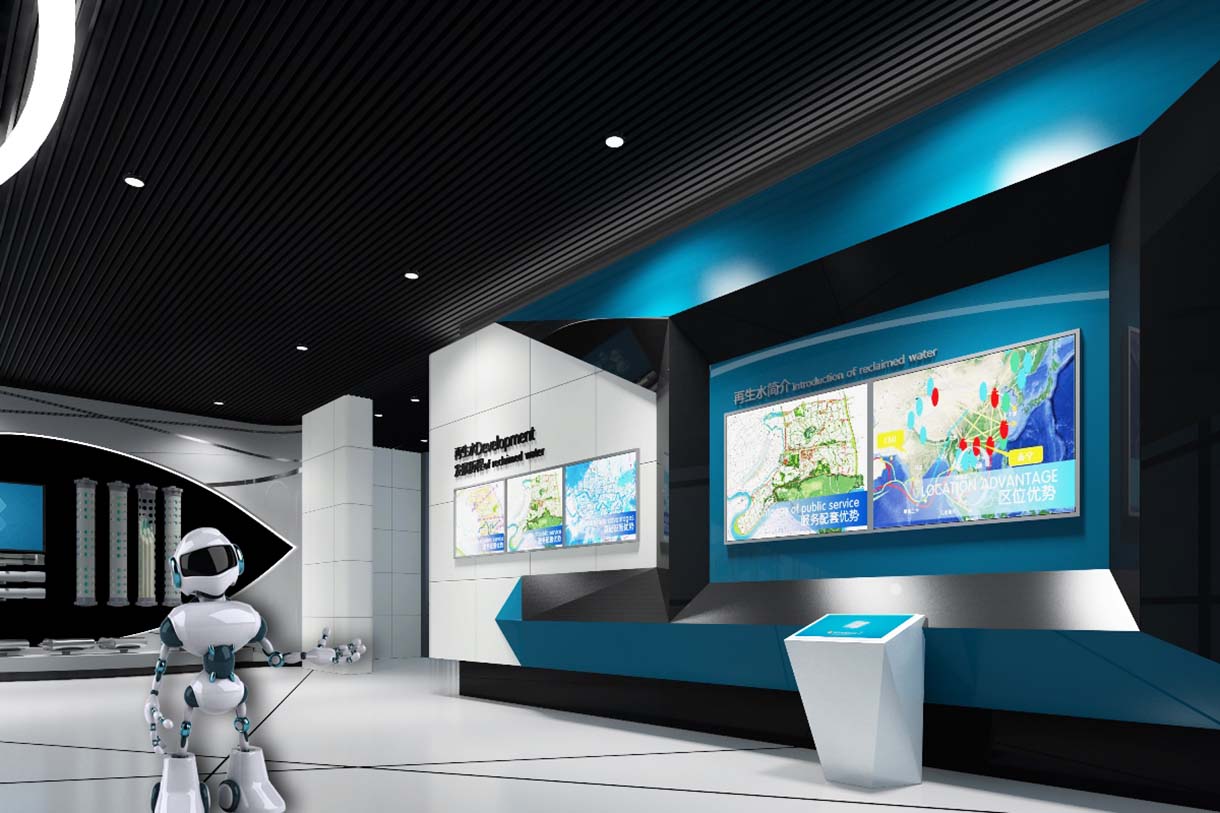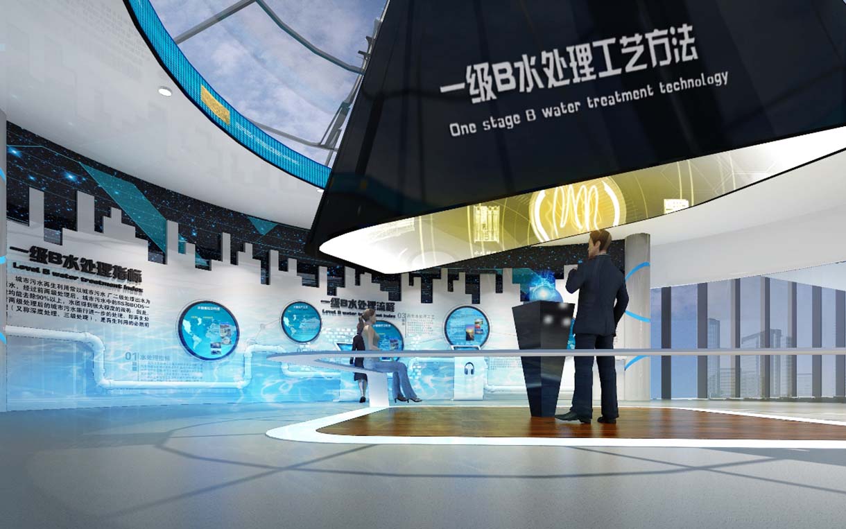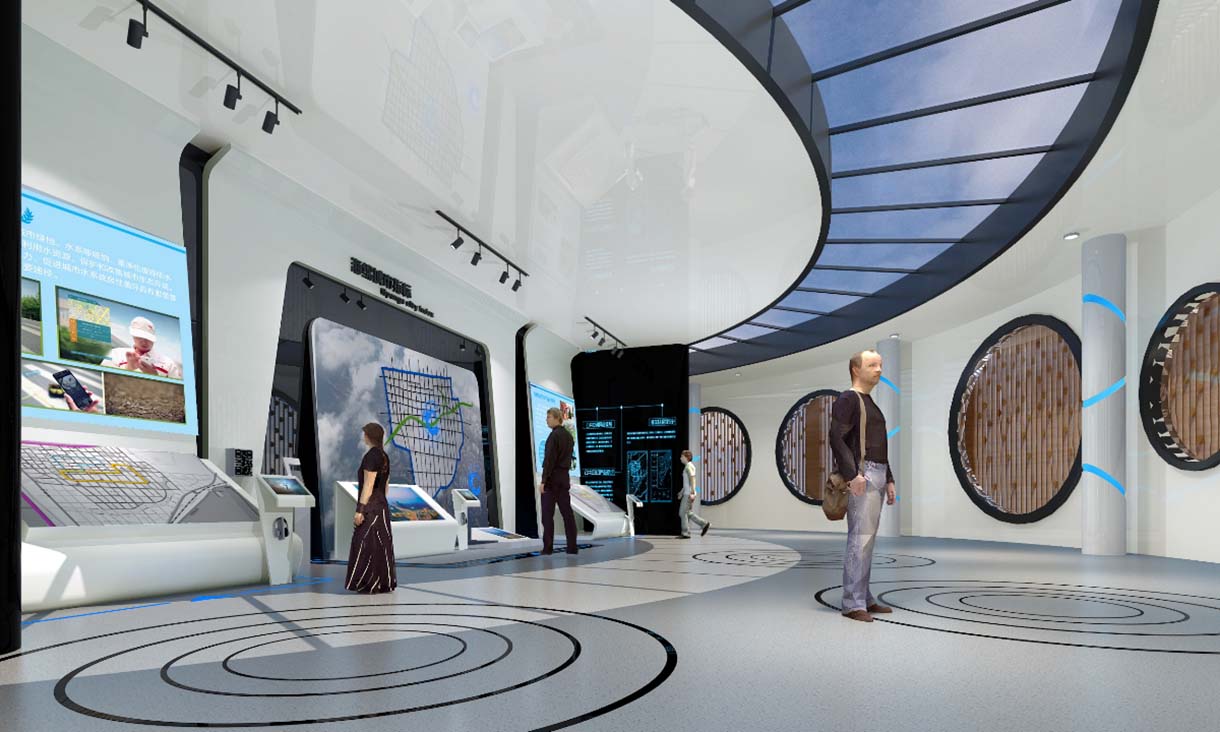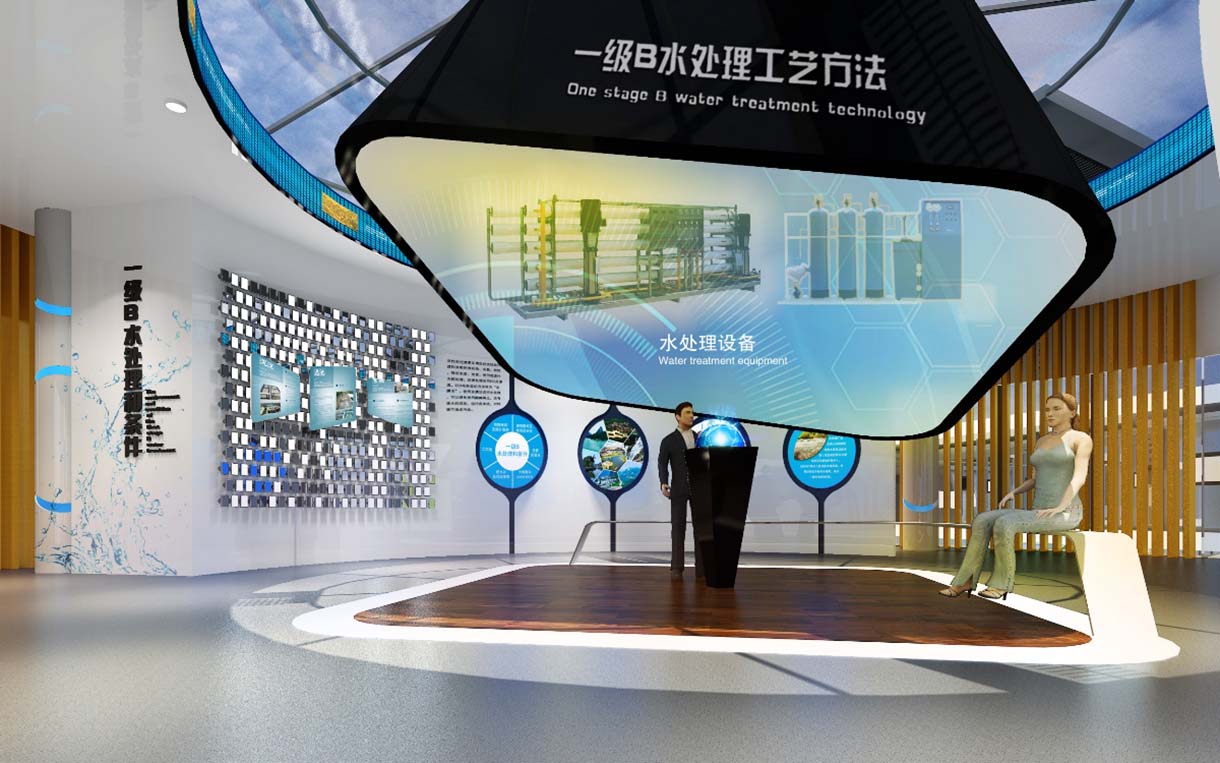中新水生態科普展廳在功能上需要具備科普及營銷兩種功能。因此,在展廳功能分區上就中新水生態科普展廳分為產品展示及水能源知識科普兩大區,兩者互不影響有相互貫通,將美觀舒適與功能性完整統一,給企業帶來更好的展示效果。