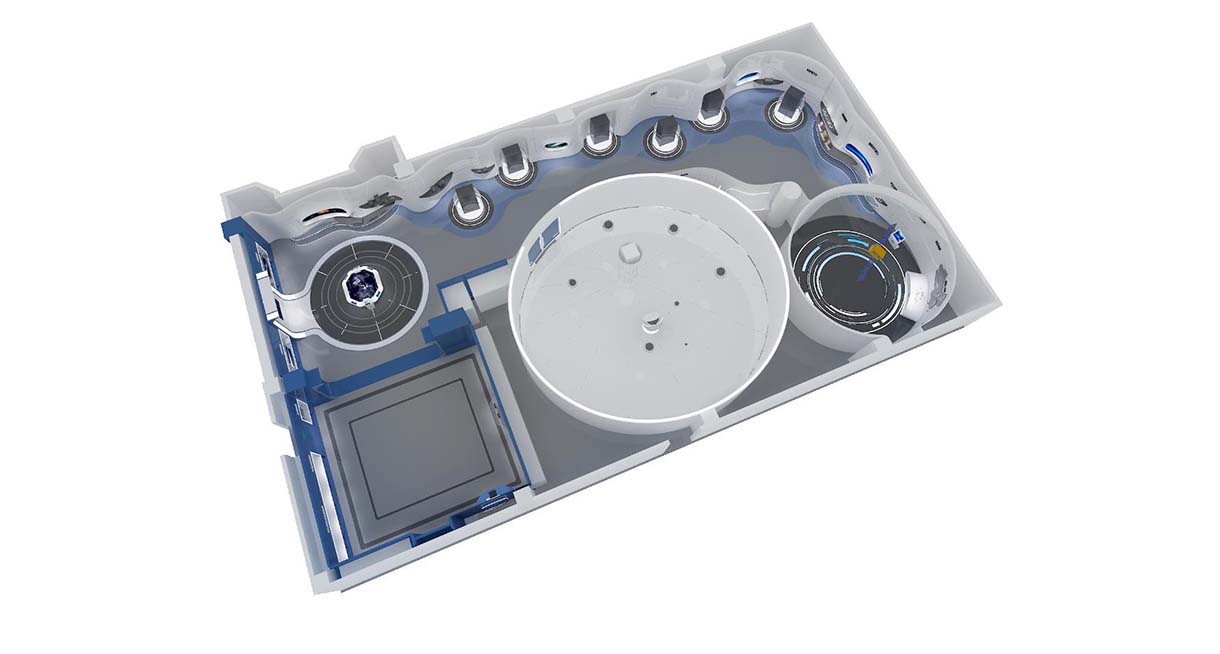 展廳設計策劃思路:以航天五院503所企業(yè)文化、產(chǎn)品特性、服務范圍作為設計出發(fā)點,以航空,衛(wèi)星軌跡造型為基礎,提煉其中創(chuàng)意進行轉(zhuǎn)化,結(jié)合展廳“航天之星,窺探蒼穹”的主題。體現(xiàn)展廳科技感,現(xiàn)代感的設計效果。