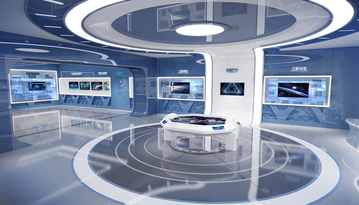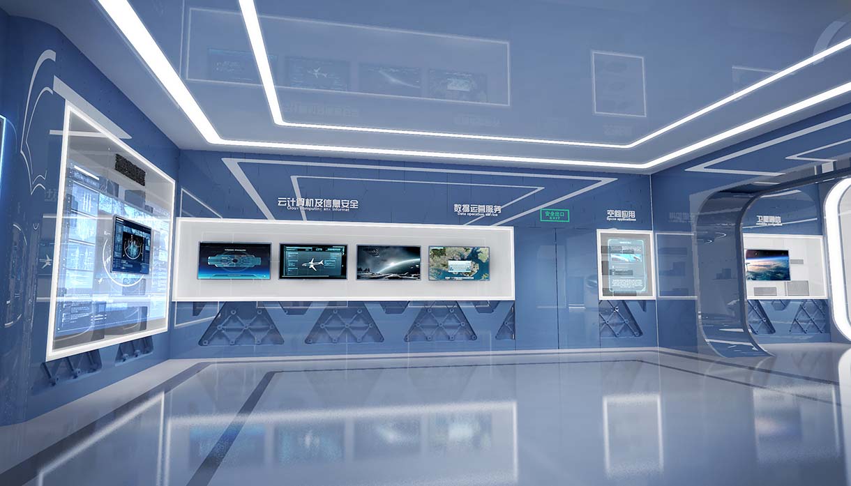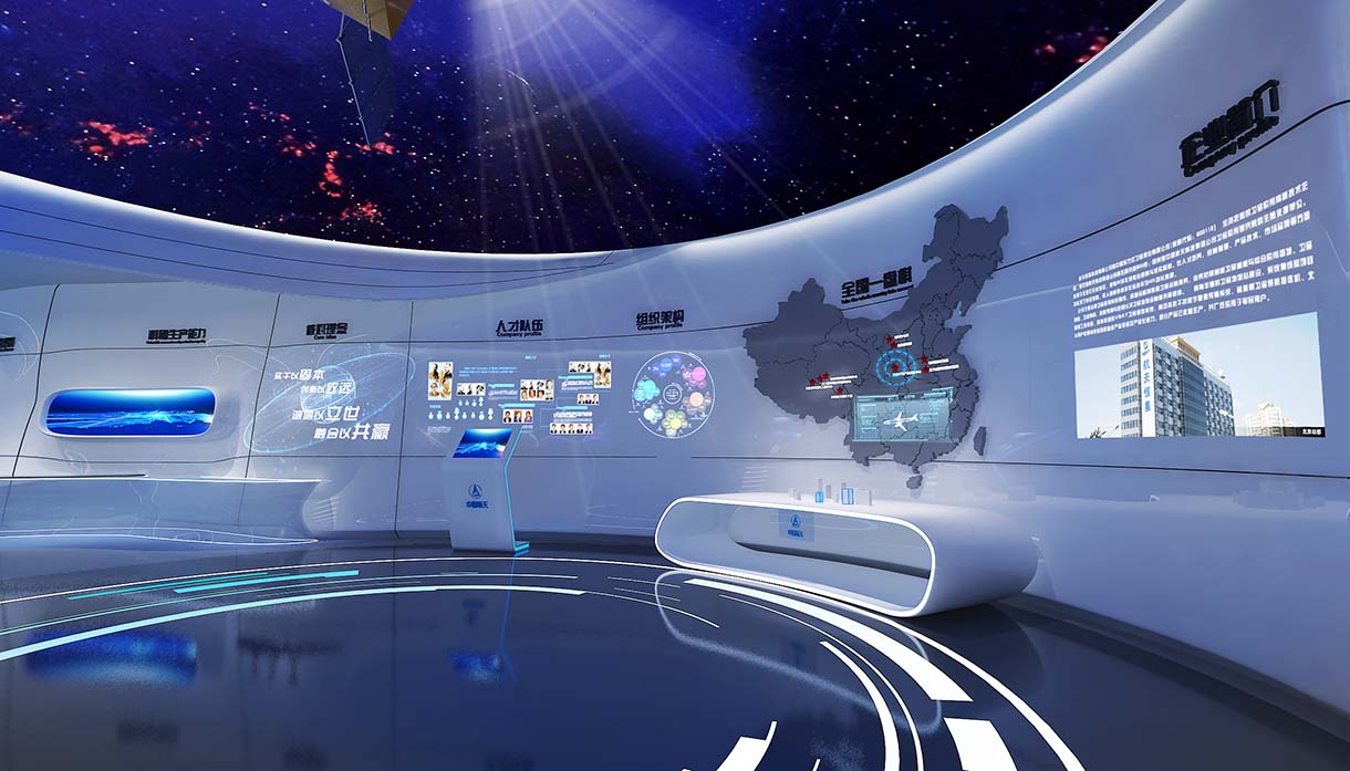 展廳設計結(jié)合最新科技,打造科技含量高、布局雄偉壯闊、內(nèi)容豐富多彩現(xiàn)在化多功能展廳。包含聲光電整體協(xié)調(diào),顯示設備多樣化,其中顯示設備包含投影機、拼接屏、LED屏及各種高清液晶電視等多達十幾項多媒體展示,讓參觀者能更加系統(tǒng)而深刻地理解了航天精神譜系。
