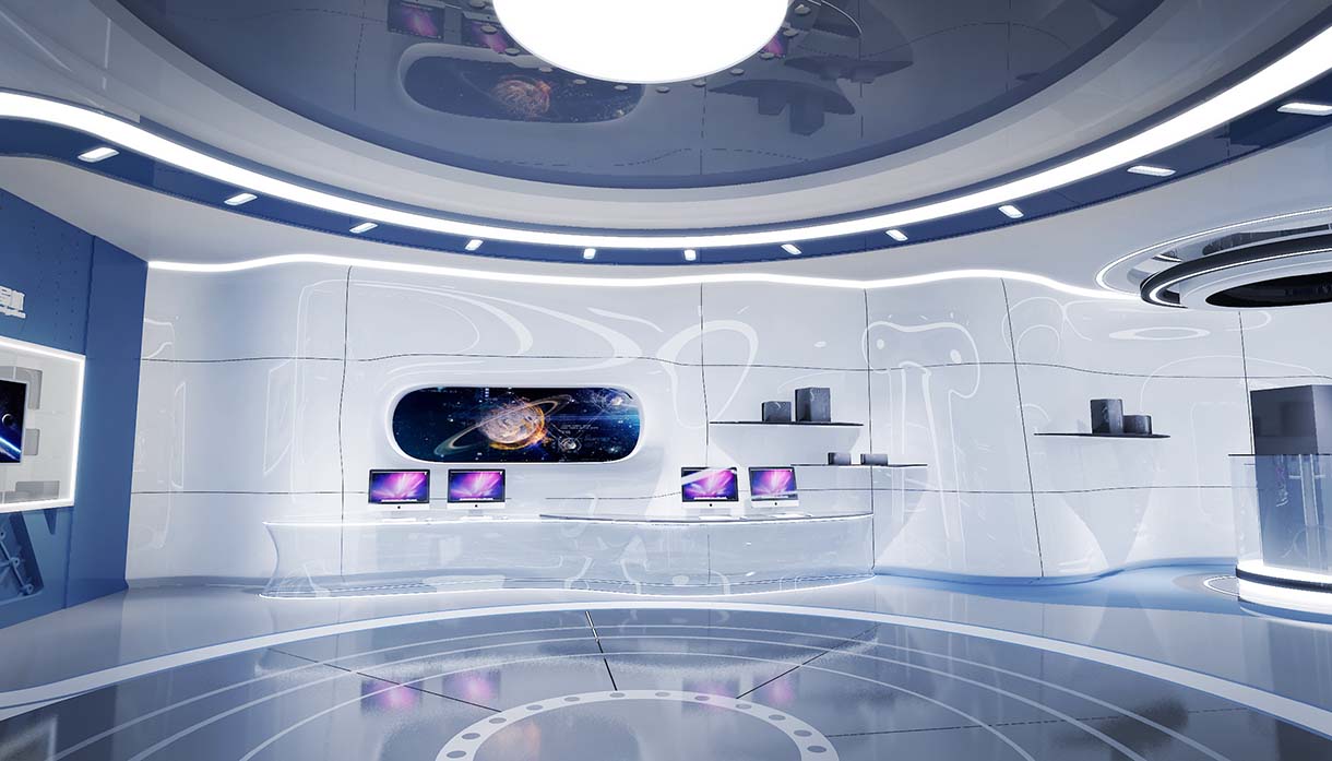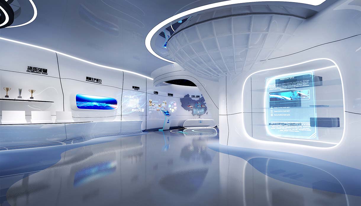 展廳多媒體設備:互動滑軌屏+VR虛擬現(xiàn)實+全息投影