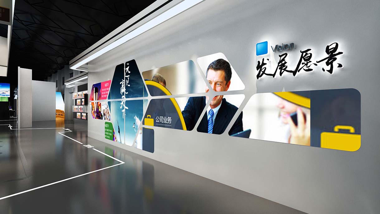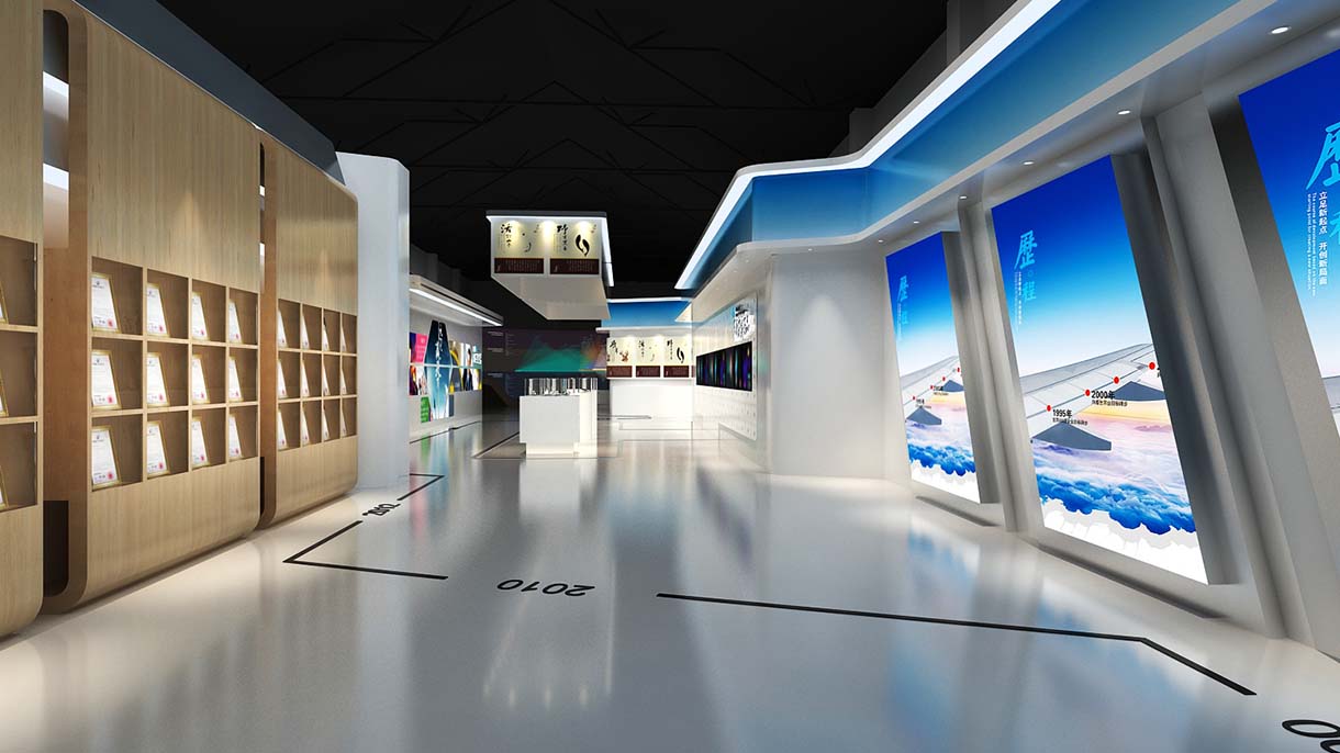 本次設計從企業形象展示入手,為參觀者打造特定的企業品牌形象,全方位傳達企業信息,提煉企業文化關鍵元素,形成主題,貫穿整個展廳,使展廳形象統一,更有力量。