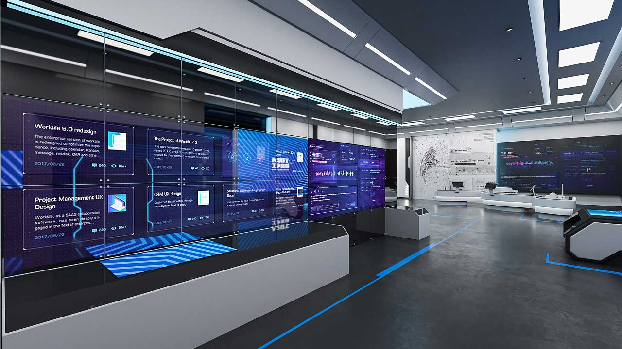 展廳多媒體控制系統:展廳內所采用的控制系統是集電腦集中管理、無線雙向傳輸、紅外智能學習、遠程觸摸控制為一體的高智能控制系統。整個展廳所有的環境照明燈光、效果燈光、視頻播放、環境音樂播放、組合屏控制、展板背光、展板底光、模型沙盤展演、監控系統等全部實現由電腦統一管理,按照預置程序自動運行。